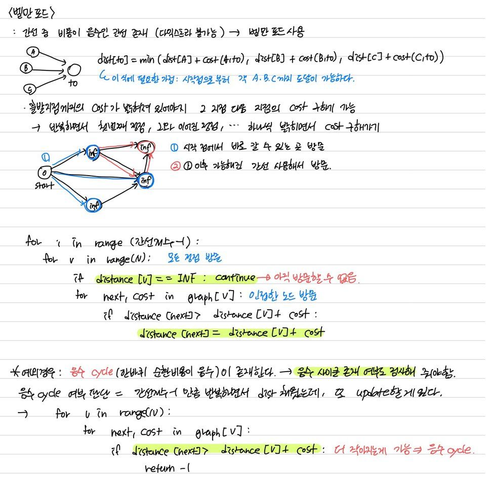 2️⃣ 벨만포드(bellmanFord) : 간선 비용 중 음수가 있을 때